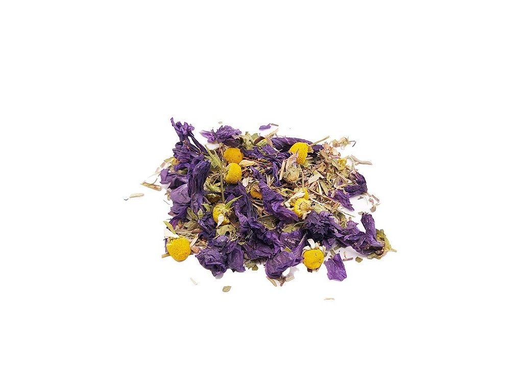 Zloženie: BIO Mäta pieporná – vňať /Herba piperitaeL./, BIO Slez maurský – kvet /Flos malvae L./, BIO Slez maurský – vňať /Herba malvae L./, BIO Rumanček kamilkový – kvet /Flos matricariae L./.