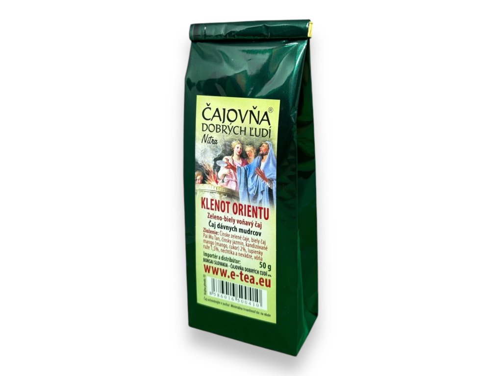 Zloženie: Čínske zelené čaje, biely čaj Pai Mu Tan, čínsky jazmín, kandizované mango 2% (mango, cukor), ruže 1,5%, lupienky nechtíka a nevädze, vôňa.